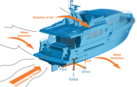 The patented RAKE function can be set in a preset trailing angle to decrease drag. Less drag means lower fuel consumption! Since our yacht stabilizers extend the ship's hull boundary (hull envelope), they are far more effective than regular fin stabilizers. Our mission is to provide you with highly efficient roll damping while cruising and at anchor!